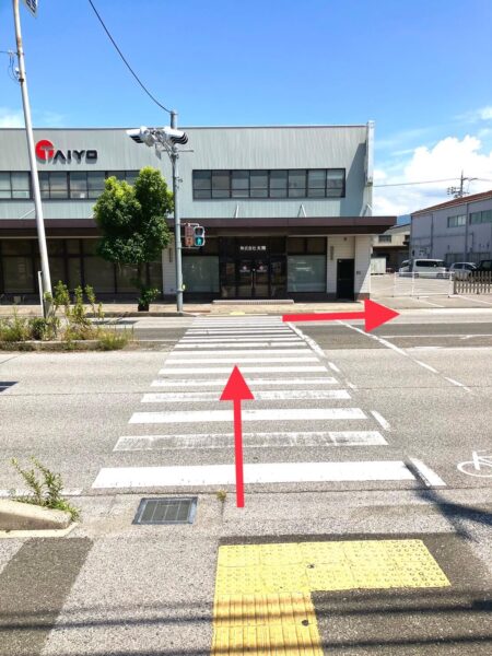 ④くすのき通りの横断歩道を渡り、そのまま右手に進みます。